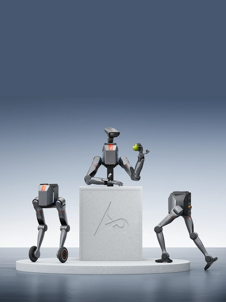 独创的模块化架构,可根据任务需求,自由选配双臂、双足、双轮足三种构型组件,并支持扩展语音、视觉等感知套件,轻松构建定制化机器人解决方案。